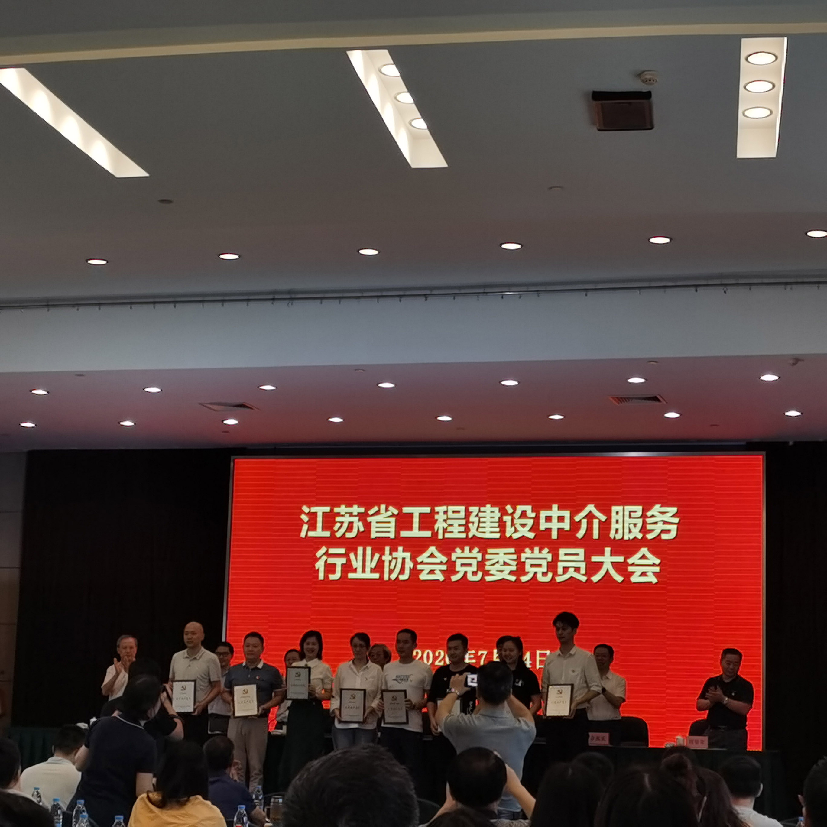 2020年7月14日,江蘇省工程建設(shè)中介服務(wù)行業(yè)協(xié)會(huì)黨委隆重召開了黨員大會(huì),我公司黨支部被授予“先進(jìn)黨支部”稱號(hào),張慶明、吳建東、周海璞、周榮等四位同志被授予“優(yōu)秀共產(chǎn)黨員”稱號(hào),公司支委委員周海璞同志上臺(tái)領(lǐng)取獎(jiǎng)牌,并代表黨支部發(fā)言。