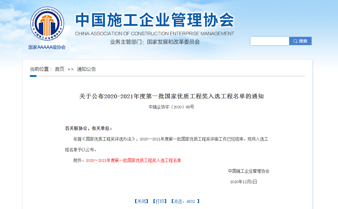 附:關(guān)于公布2020-2021年度第一批國家優(yōu)質(zhì)工程獎入選工程名單的通知